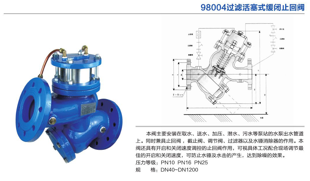 - 主要安裝在取水、送水、加壓、潛水、污水等泵站的水泵出水管道上。