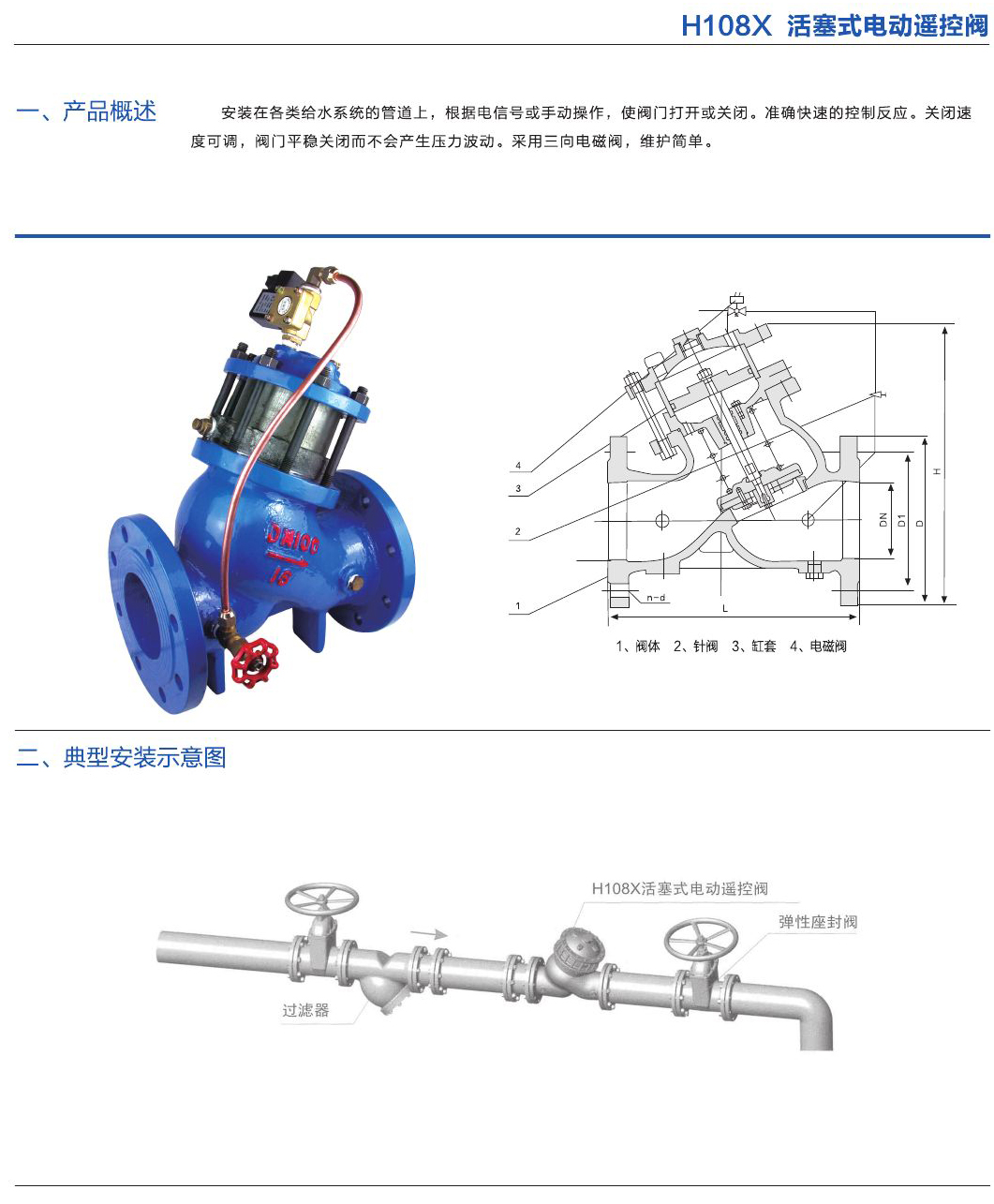 - 安裝在各類給水系統(tǒng)的管道上,根據(jù)電信號(hào)或手動(dòng)操作,使閥門(mén)打開(kāi)或關(guān)閉。準(zhǔn)確快速的控制反應(yīng)。關(guān)閉速度可調(diào),閥門(mén)平穩(wěn)關(guān)閉而不會(huì)產(chǎn)生壓力波動(dòng)。采用三向電磁閥,維護(hù)簡(jiǎn)單。