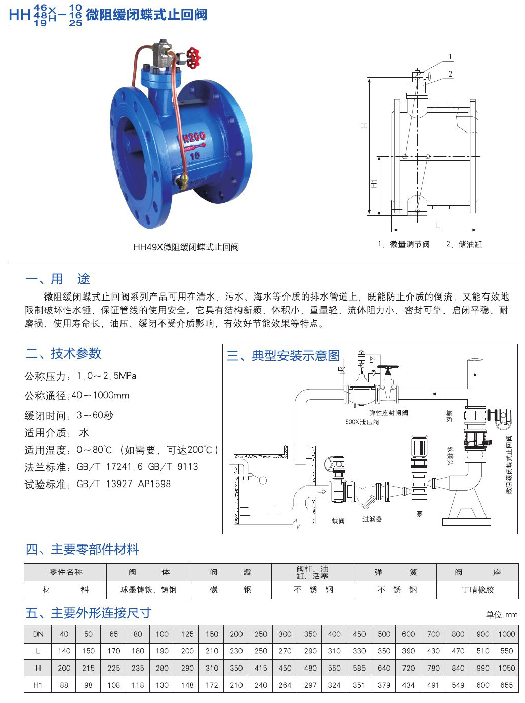 - 微阻緩閉蝶式止回閥系列產(chǎn)品可用在清水、污水、海水等介質(zhì)的排水管道上,既能防止介質(zhì)的倒流,又能有效地限制破壞性水錘,保證管線的使用安全。